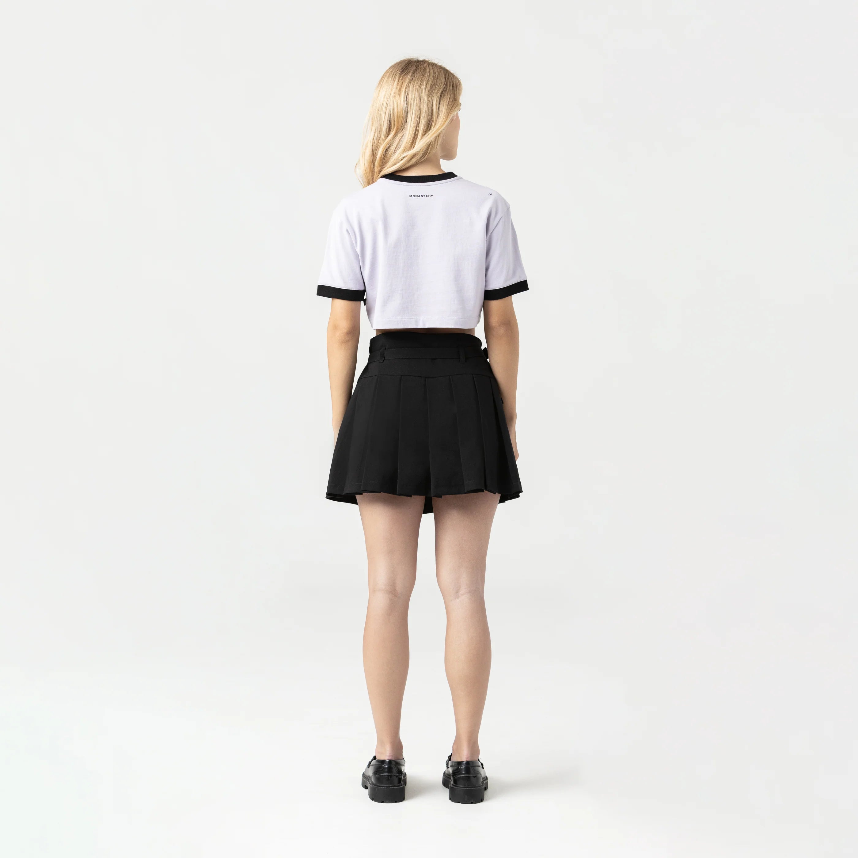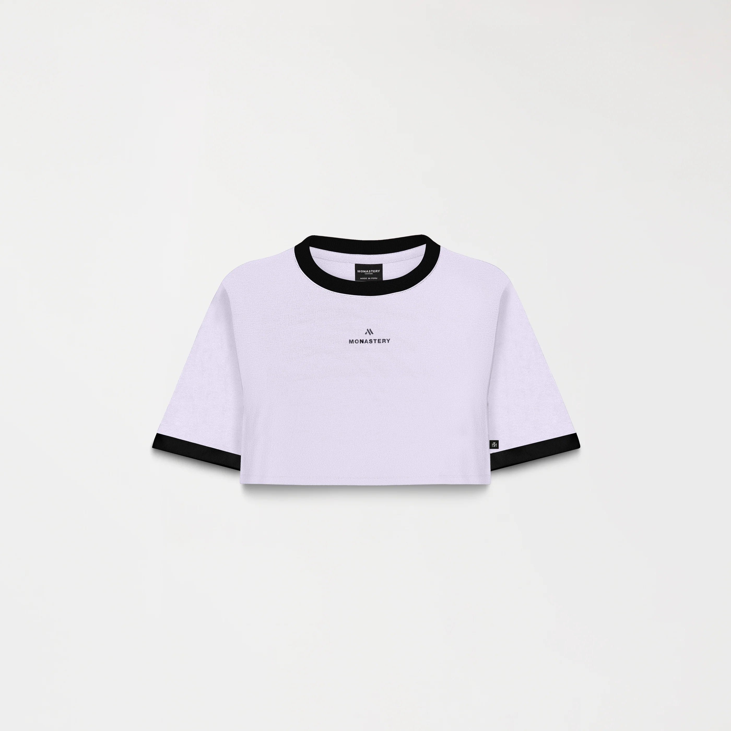 Crop top para mujer en algodón peruano exclusivo para Monastery, elaborada en silueta pequeña, Senn cuenta con logo Monastery e insignia en tecnica plastisol + trasnfer brillante. Esta referencia cuenta con detalles en tono contraste que le dan un toque distintivo y moderno, este crop top es ideal para quienes buscan un look cómodo y sofisticado gracias a su gran base textil.