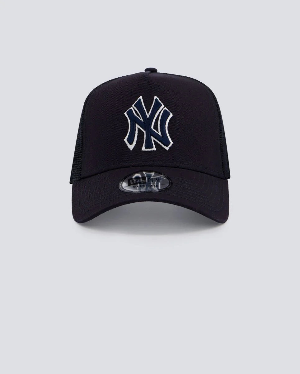 Gorra 9FORTY tipo Trucker en color azul, con el logo de los New York Yankees bordado en azul y contorno blanco para un acabado llamativo y moderno. Incorpora malla trasera para mayor frescura, visera curva y ajuste trasero para un calce cómodo y personalizable. Ideal para un look urbano con identidad MLB.