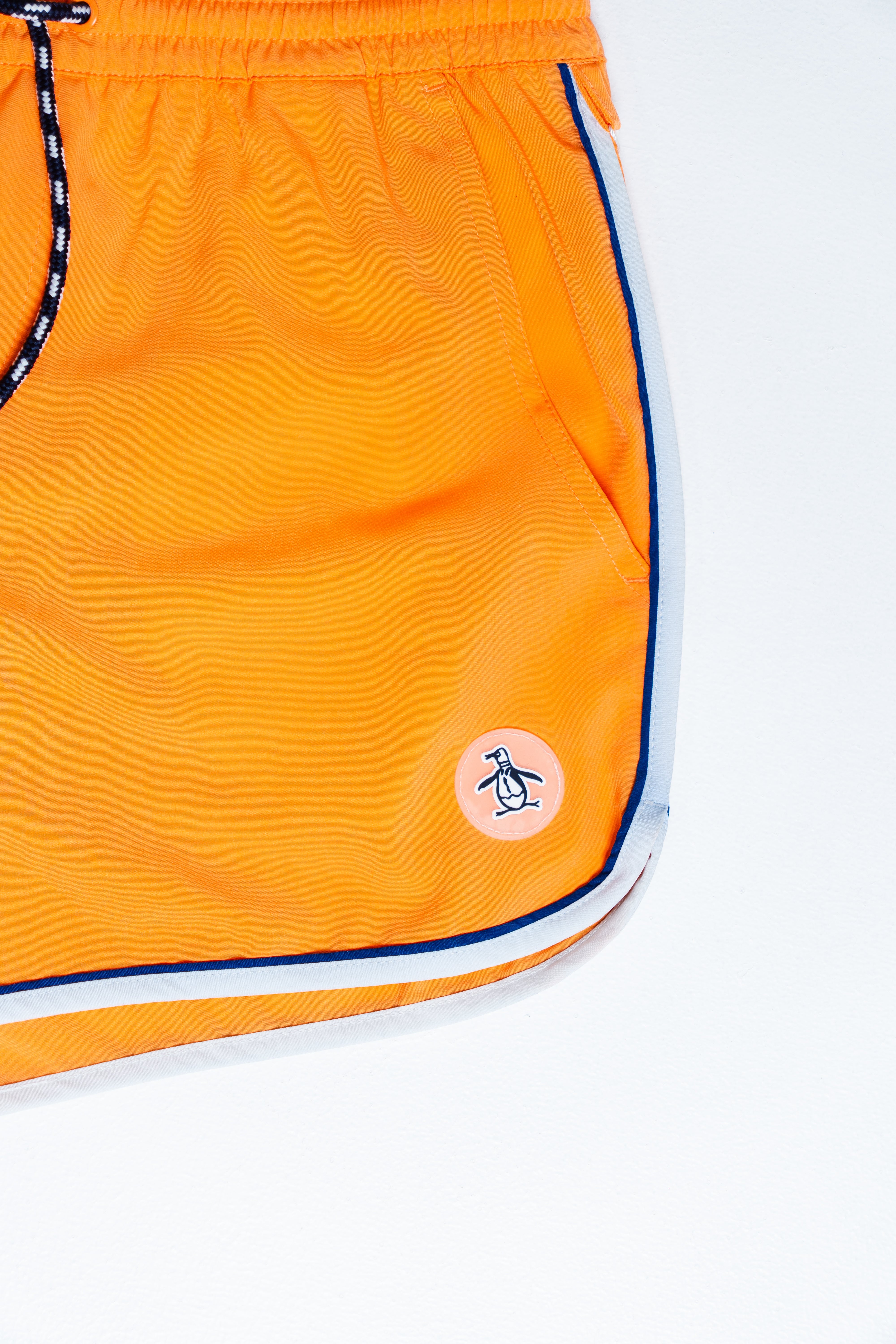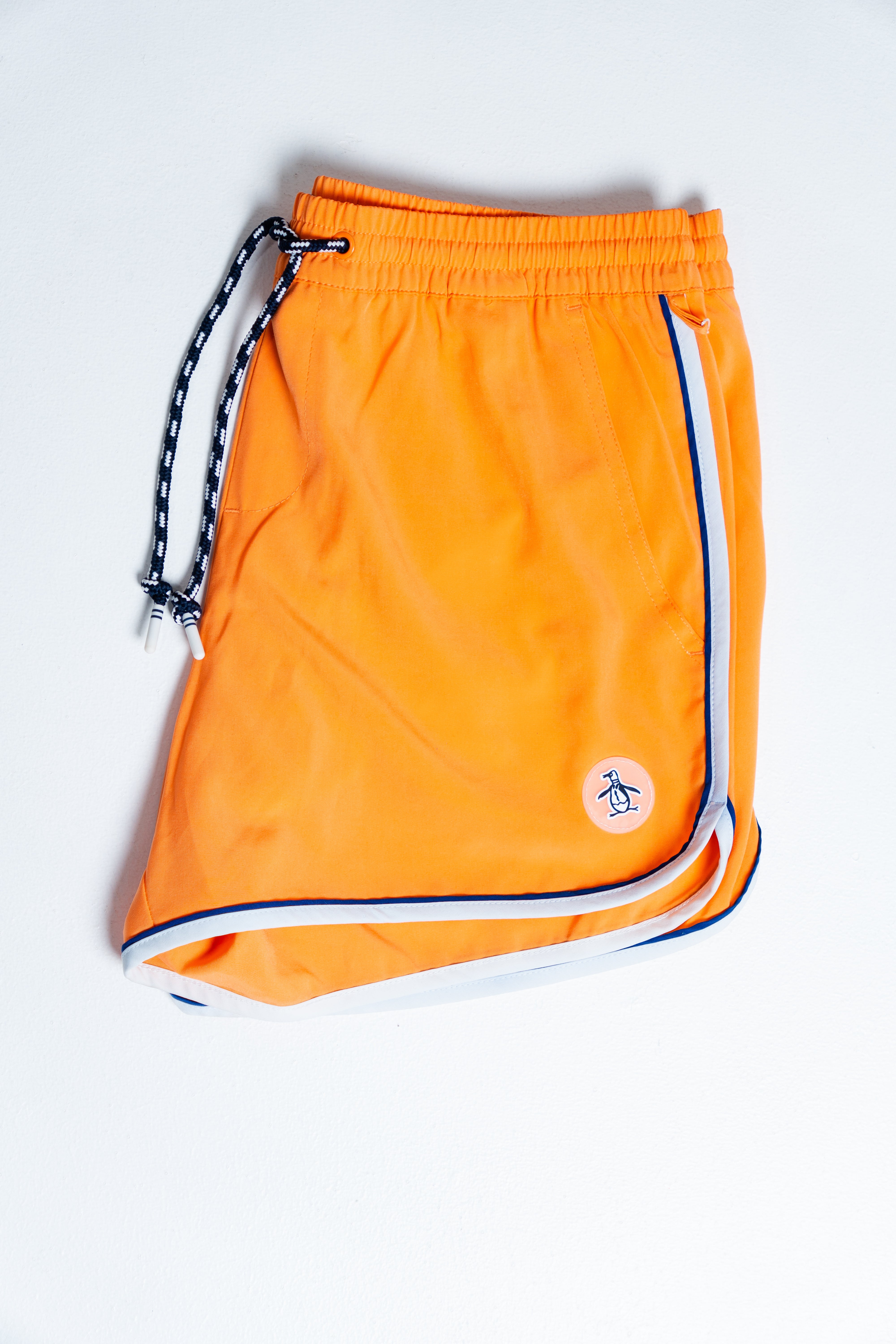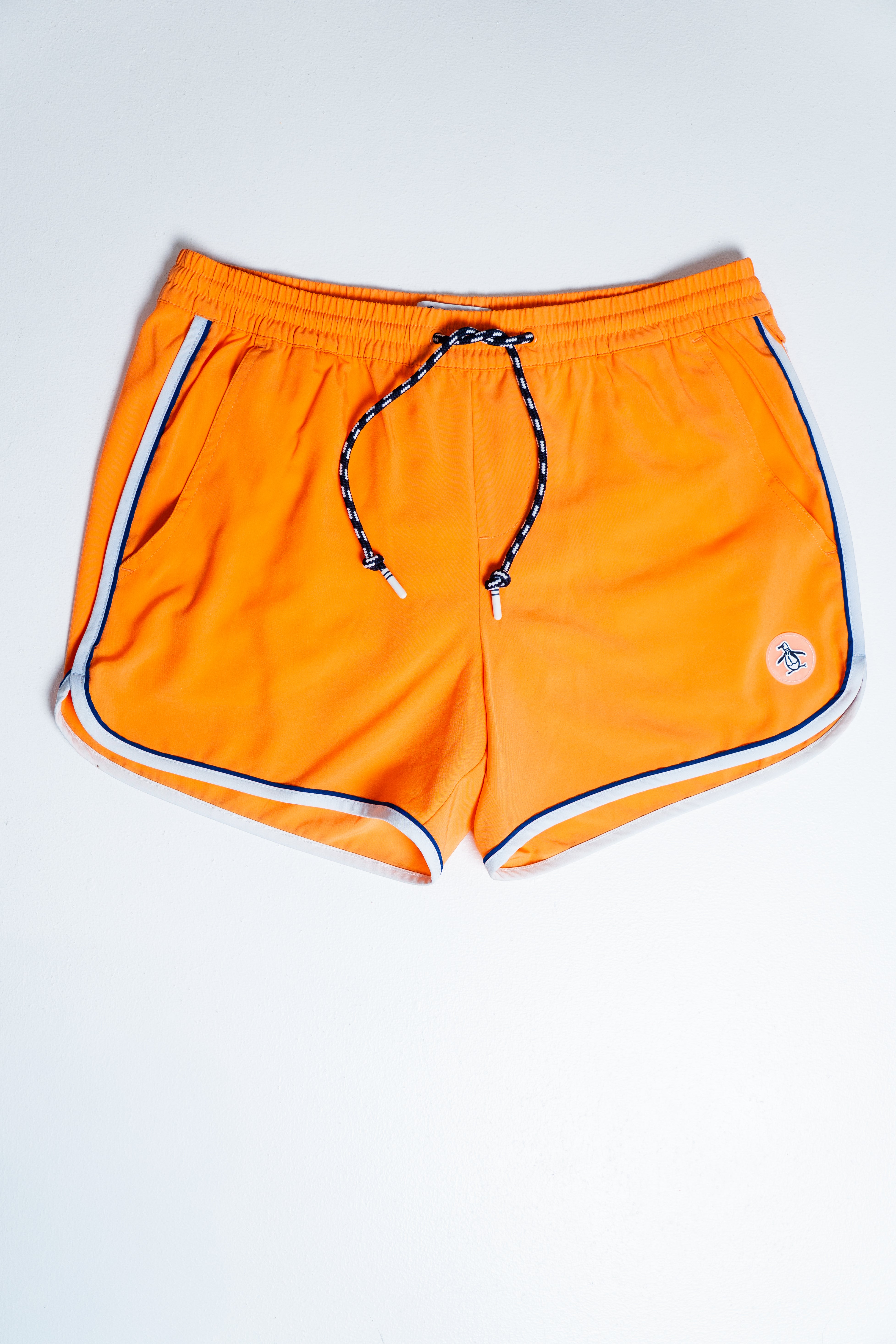 Estas listo para la diversión de la fiesta en la piscina con estos shorts de baño para hombre Original Penguin. Un estampado de Pete en toda la prenda hace olas en la tela de sarga liviana y de secado rápido. Una pretina elástica con cordón ayuda a mantener este traje de baño cómodamente en su lugar mientras te mueves dentro y fuera del agua.