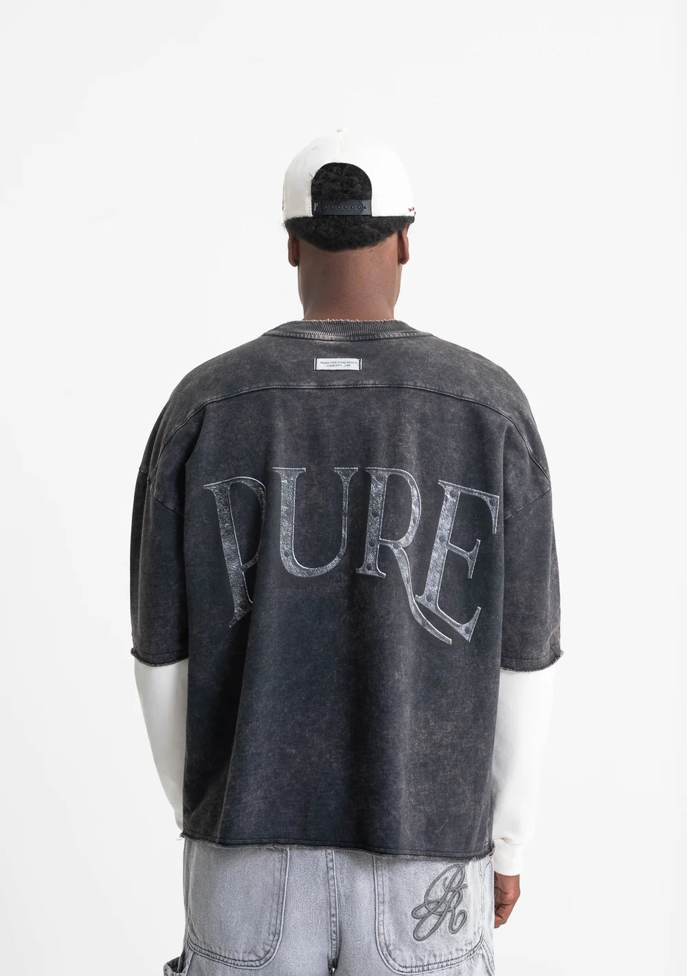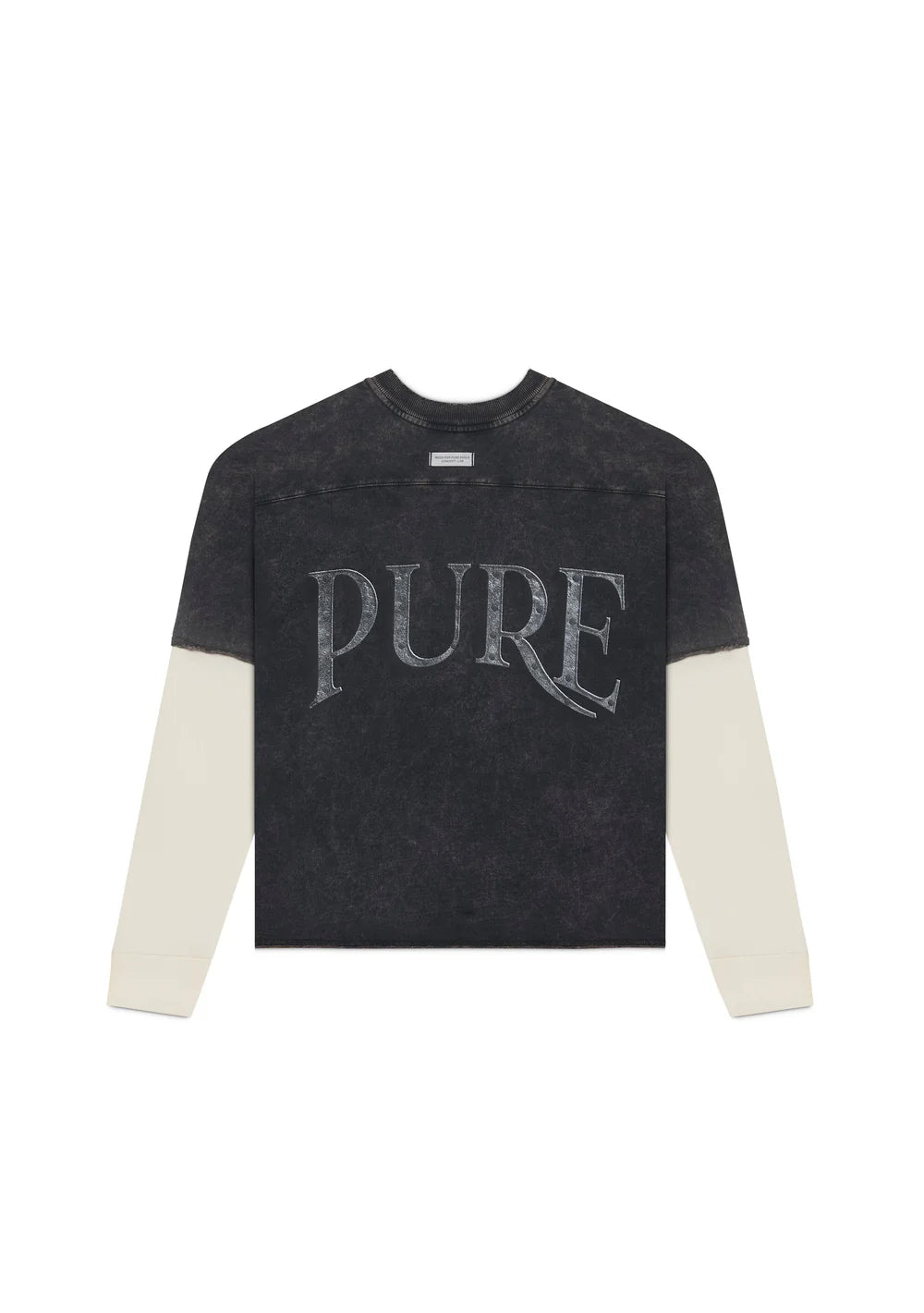 Camiseta color negra con mangas marfil. Fit: box. Tela: 100% algodón. 250 gramos. Estampado en pecho y espalda.